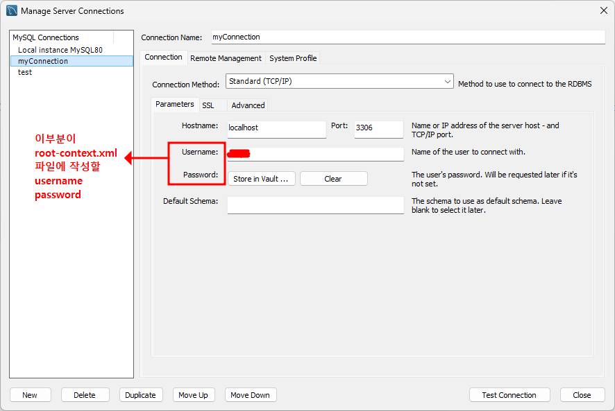 username과 password에 DB Connection의 내 아이디와 패스워드를 작성