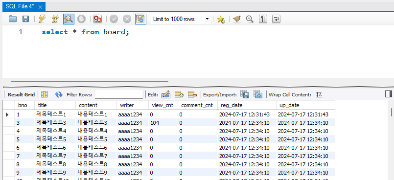 SELECT bno , title , content, writer
