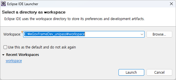 이클립스 실행파일 새로 생성(eGovFrameDev-3.10.0-64bit)