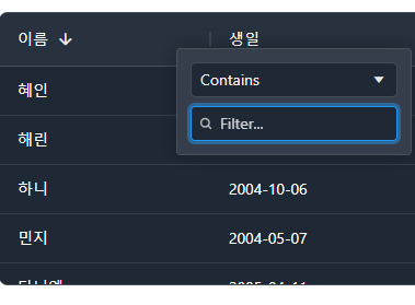 customHeader: "이름 별명 장점 단점", // 헤더명 추가 출력